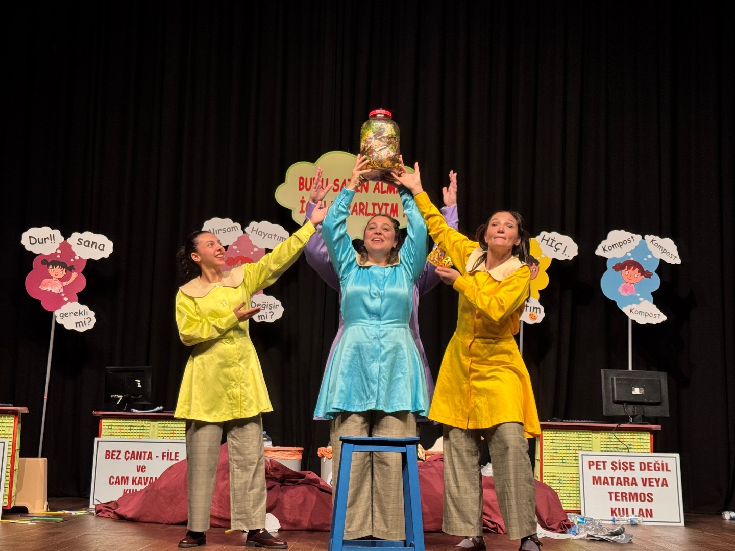 “Sıfır Atık Projesi” kapsamında gelecek nesillere sürdürülebilir yaşam alışkanlıkları kazandırmak amacıyla yeni bir çalışma başlatıldı. Bu çerçevede hazırlanan “Çöpe Hiç At, Sıfır Olsun” adlı tiyatro oyununun prömiyeri, Başiskele Türkiye Yüzyılı Gençlik Merkezi’nde gerçekleştirildi. Oyun, dört öğrencinin sıfır atık konulu bir tiyatro yarışmasına hazırlanırken yaşadıkları serüveni eğlenceli bir dille sahneye taşıyor.