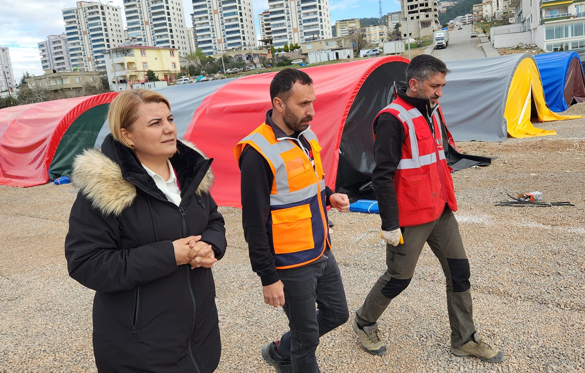 İzmit Belediye Başkanı Fatma Kaplan Hürriyet, Adıyaman’da kurulan çadır yaşam alanında çalışmaları incelemek üzere yeniden deprem bölgesine gitti.