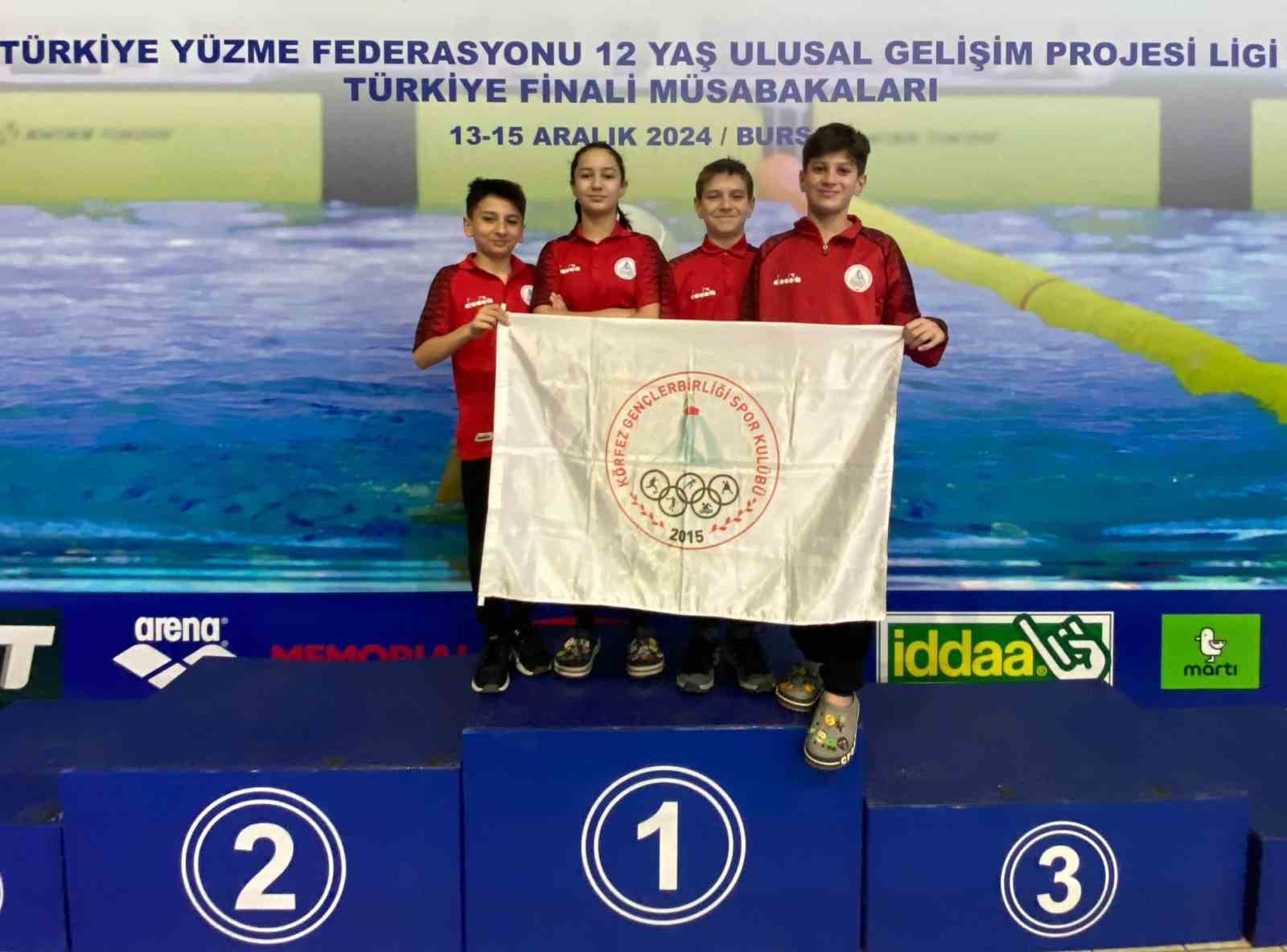 Yüzmede 11-12 Yaş Ulusal Gelişim Projesi Ligi 12 Yaş Türkiye Finalleri 13-15 Aralık’ta Bursa’da yapıldı. Yarışlara 4 sporcu ile katılan Körfez Gençlerbirliği Spor Kulübü, 4 madalya alarak kürsüde yer almayı başardı.