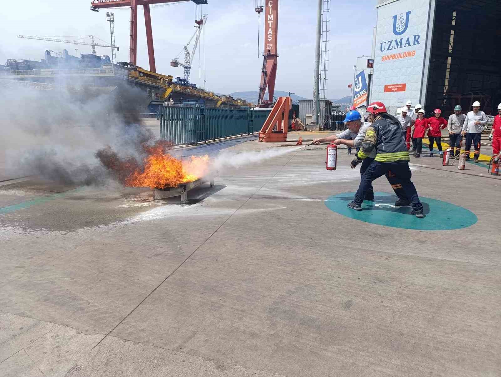 Kocaeli Büyükşehir Belediyesi İtfaiye Dairesi Başkanlığı, UZMAR Gemi İnşa Sanayi firması acil durum ekiplerine eğitim verdi.