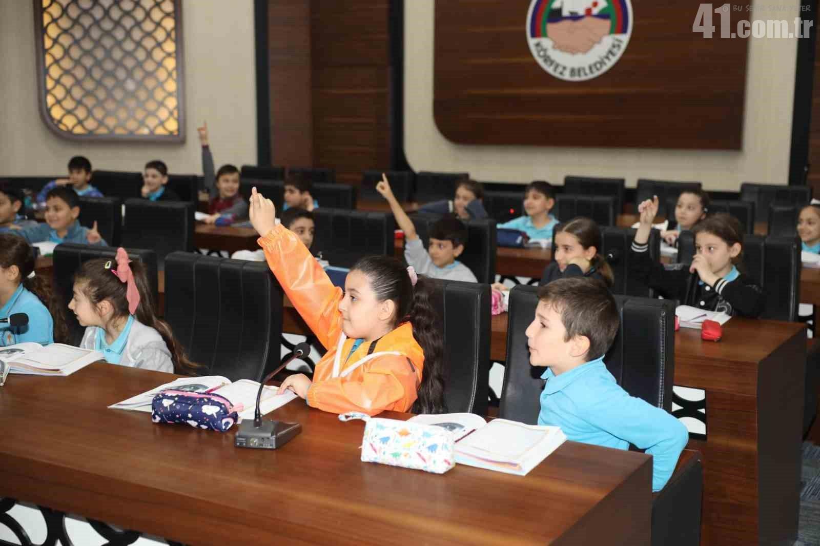 Körfez Ahmet Taner Kışlalı İlköğretim Okulu 3-A sınıfı öğrencileri, Sosyal Bilgiler dersini Körfez Belediye Başkanı Şener Söğüt ile birlikte meclis salonunda işledi.