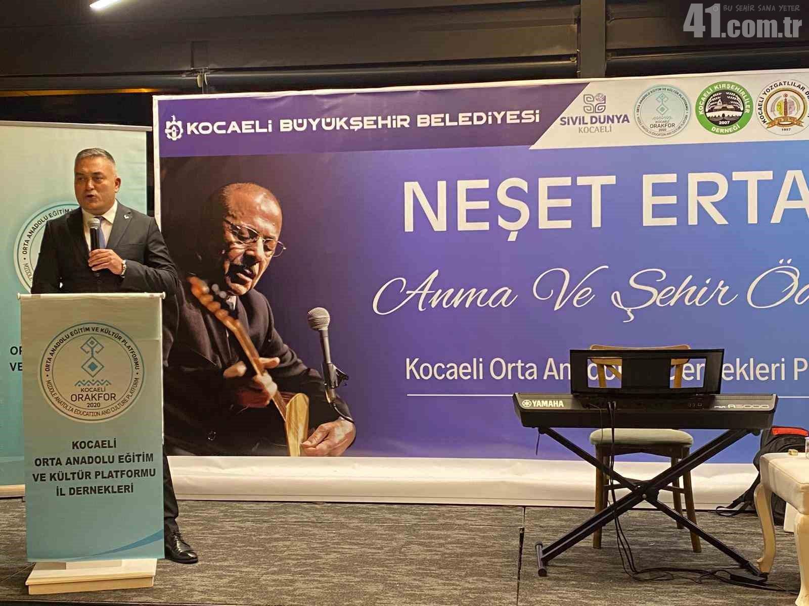 Kocaeli Orta Anadolu İl Dernekleri Platformu Başkanı Erhan Bilgiç, yaptığı konuşmada, “Bozkırın Tezenesi, gönül insanı, büyük usta Neşet Ertaş’ı anma programına ve bu yıl bir yenisini düzenlediğimiz ’Şehir Ödülleri’ törenine hoş geldiniz. Bugün, Kocaeli Büyükşehir Belediyemiz ile omuz omuza vererek, Anadolu’nun kalbinden kopup gelmiş, evrensel bir değere dönüşmüş, büyük ozanımızı saygı, sevgi ve rahmetle anıyoruz. Neşet Ertaş sazıyla, sözüyle, duruşuyla bu toprakların özünü, sevgisini, hüznünü ve neşesini en duru şekilde dile getirmiş eşsiz bir sanatkârdır. O, sadece bir halk ozanı değil, UNESCO tarafından ‘Yaşayan İnsan Hazinesi’ ilan edilmiş bir gönül eridir. Bu yıl da ‘Şehir Ödülleri’ ile Kocaeli’mize kültür, sanat, spor ve sosyal yaşamda katkı sunan değerli kişi ve kurumlara vefa gösteriyoruz. Onların başarıları hepimize ilham kaynağıdır” ifadelerini kullandı.