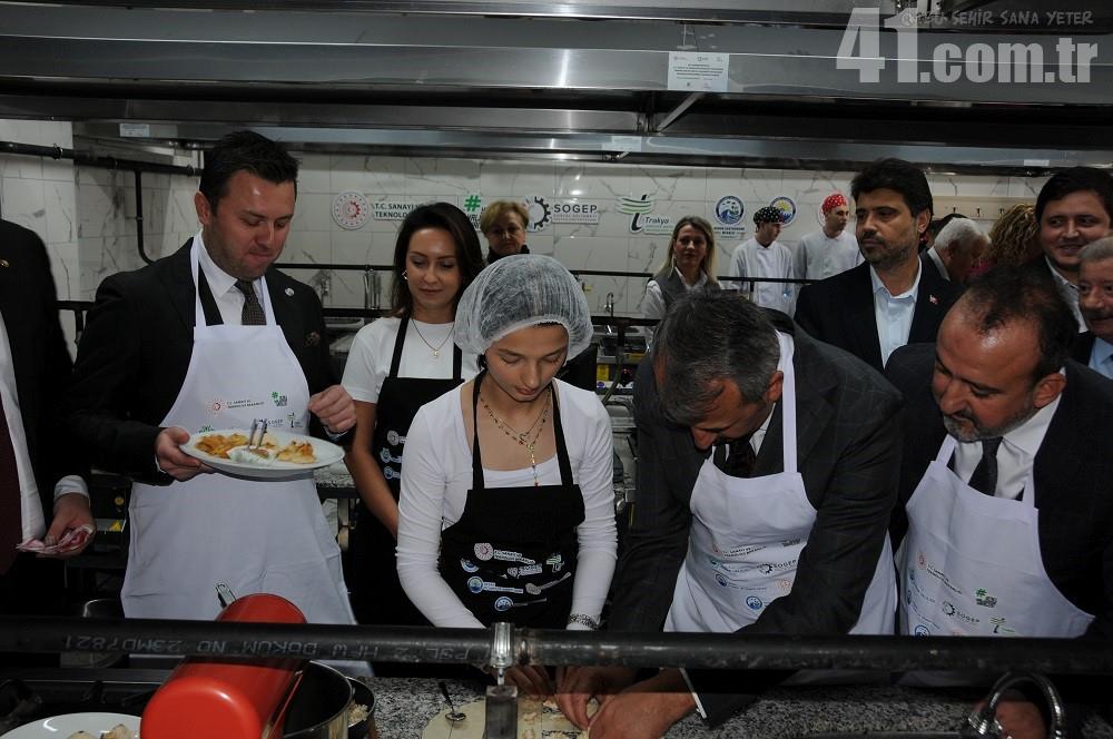 Açılıştan sonra Vali Yunus Sezer, Genel Sekreter Mahmut Şahin ve Keşan Ticaret ve Sanayi Odası Başkanı İsmail Şapçı önlük giyerek öğrencilerle İpsala Mantısı ve Nişan Kurabiyesi yaptı.