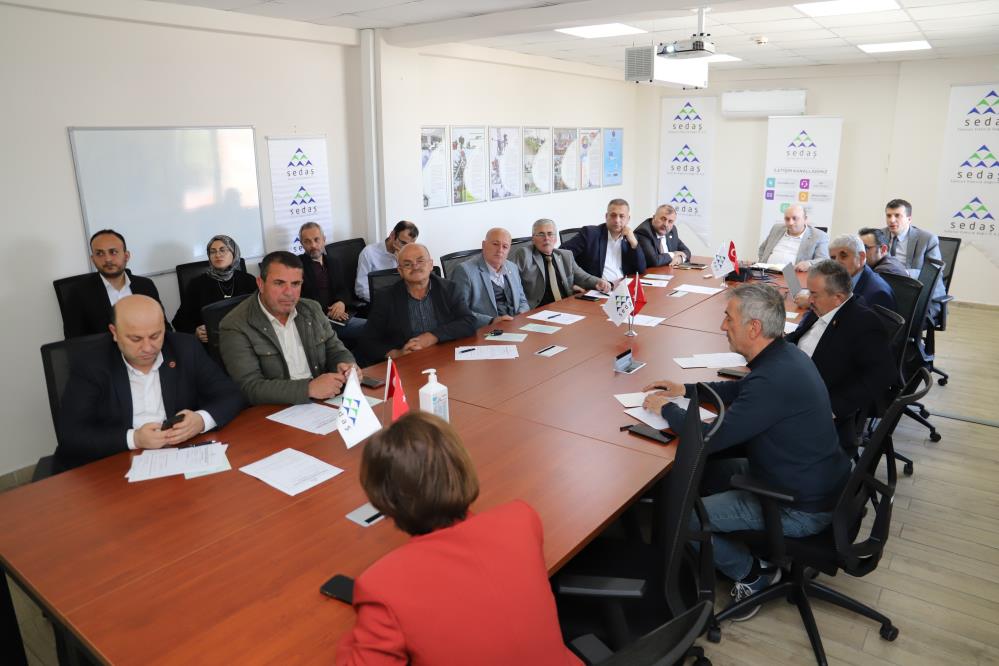 SEDAŞ’ın deprem bölgesinde görev alan ekiplerinin çalışmalarından oluşan video gösterimi ve elektrik dağıtım faaliyetlerini yansıtan genel değerlendirme sunumu ile devam eden toplantıya, SEDAŞ Enerji Şebeke Yönetimi Direktörü Erol Sancak, SEDAŞ Düzce-Bolu Bölge Müdürü Serkan Yiğit, SEDAŞ Kurumsal İletişim ve Müşteri İlişkileri Müdürü Efsun Ergin, SEDAŞ Bölge Yöneticileri ile Bolu il ve ilçe muhtar dernek başkanları katıldı. Sunumların ardından SEDAŞ yöneticileri muhtarların talep ve önerilerini dinleyerek, karşılıklı fikir alışverişinde bulundular.