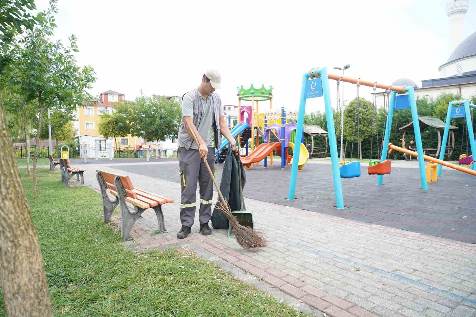 Çayırova’da belediye ekipleri tüm parklarda düzenli olarak temizlik çalışması gerçekleştiriyor.