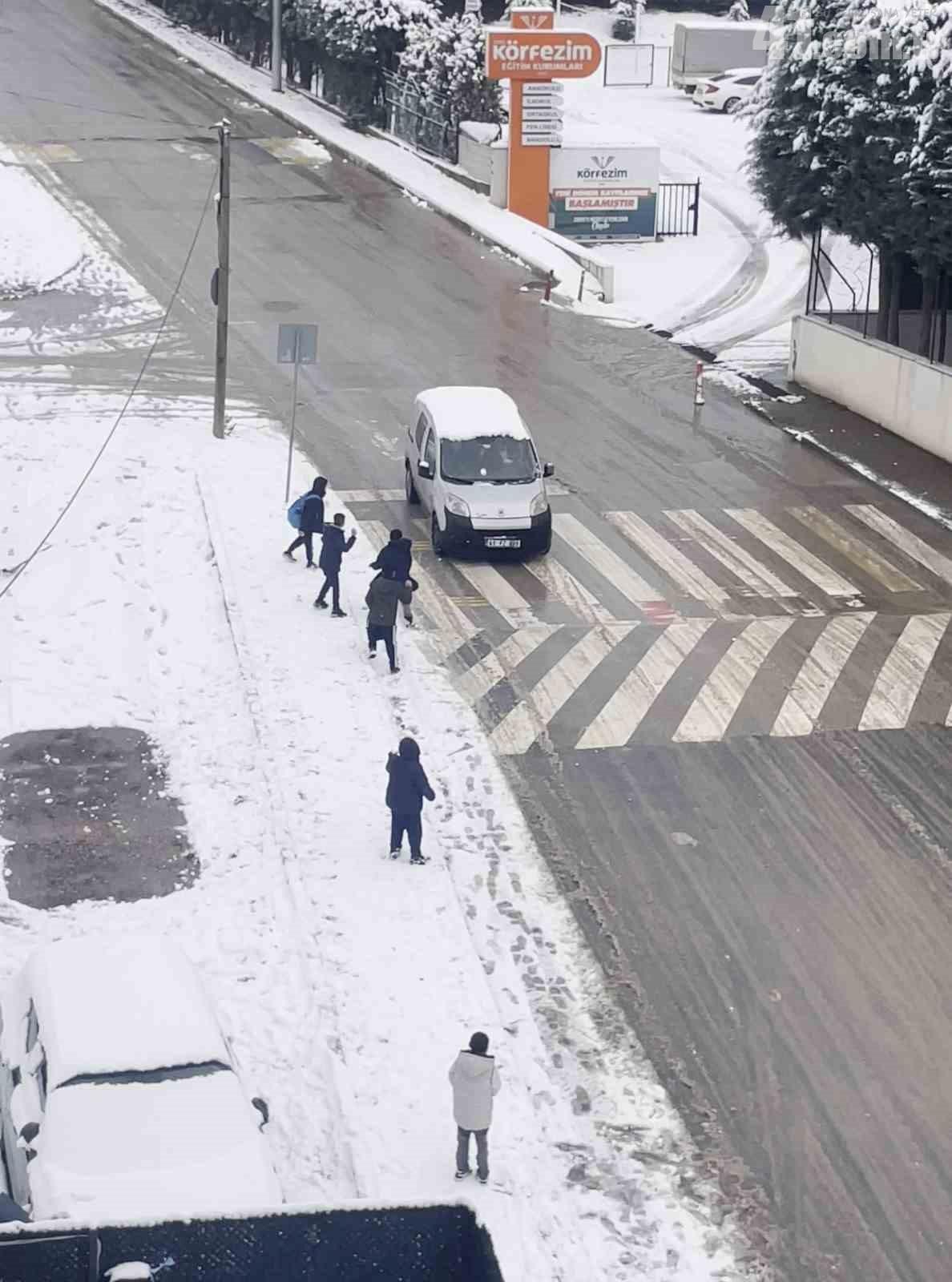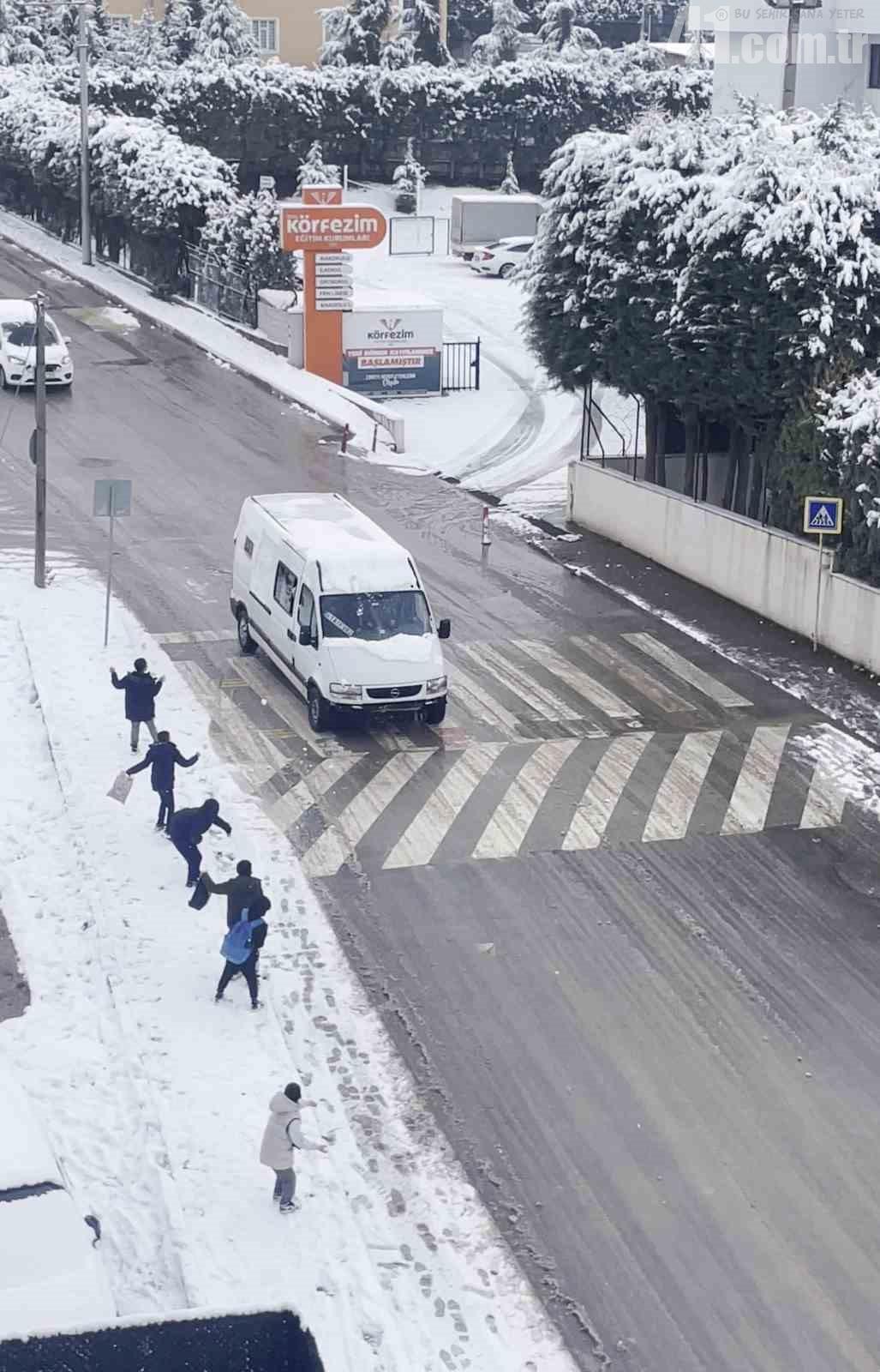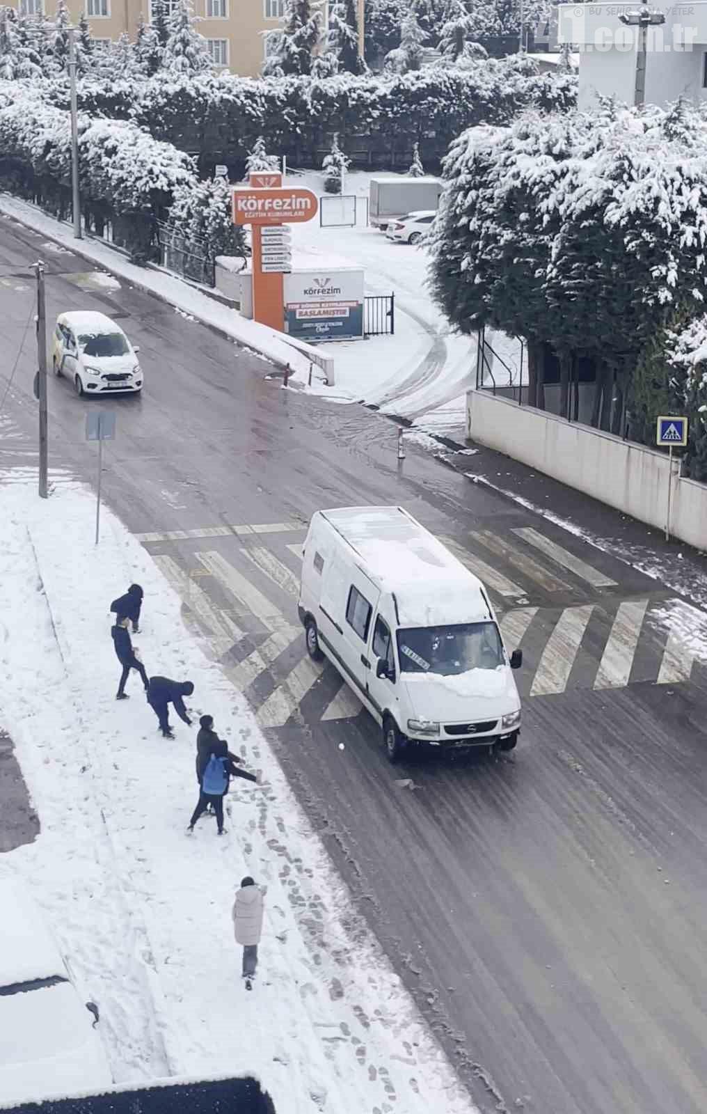 Hava sıcaklığının 1 derece ölçüldüğü Kocaeli’de, olumsuz hava şartları dolayısıyla okulları tatil olan çocuklardan bazıları soluğu sokakta aldı. Sokağa çıkan bir grup çocuk, seyir halindeki araçlara kar topu attı. Vatandaş kamerasına yansıyan görüntülerde, bir servisin durduğu, araçtan inen sürücü ve yolcuların da çocuklara kar topu atarak karşılık verdiği anlar yer aldı.