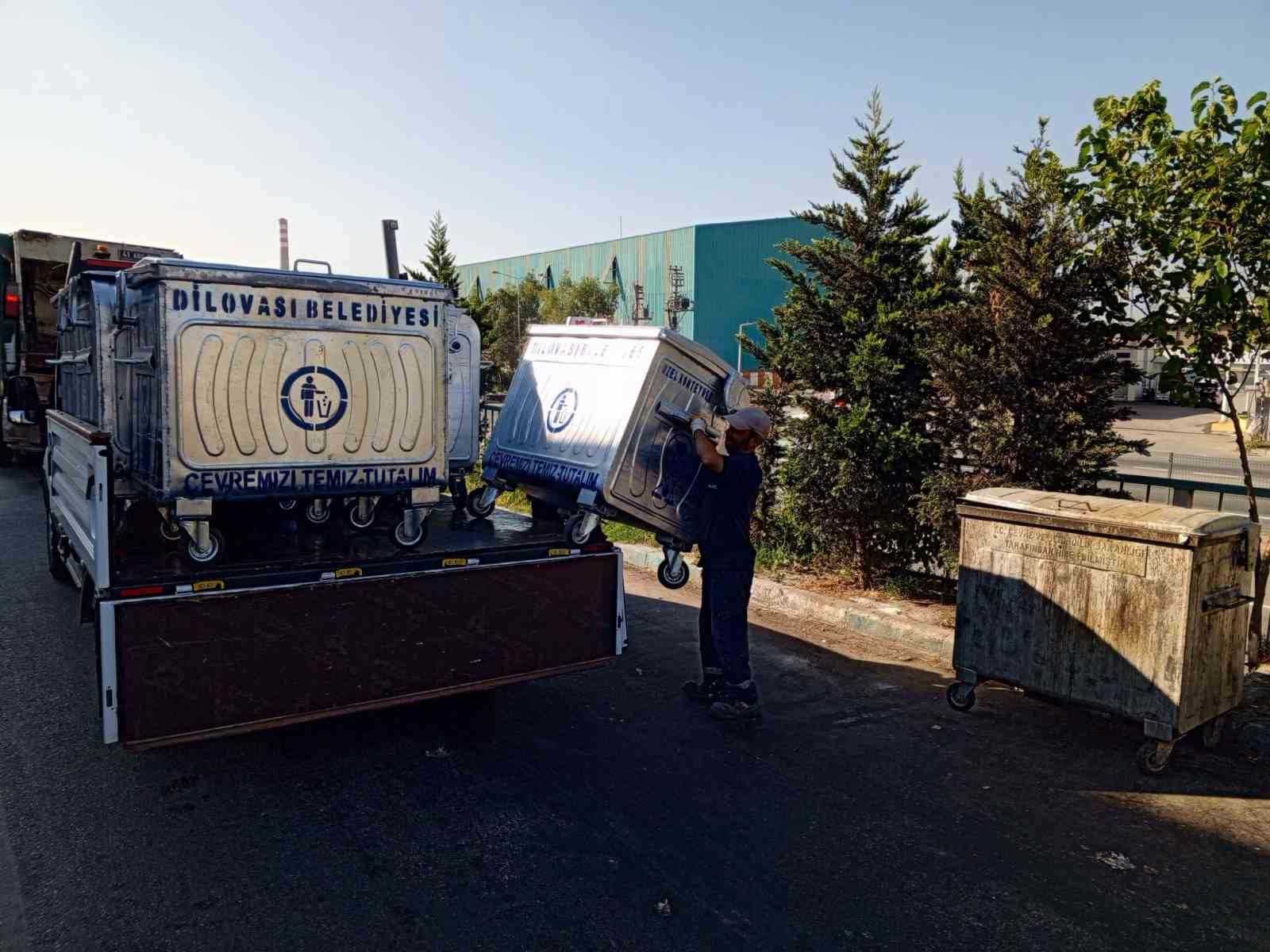 Dilovası’nda temizlik ve çevre düzenini artırmak amacıyla eski çöp konteynerlerini yenileme çalışmalarına başlandı. Mevcut eski konteynerler modern ve dayanıklı yeni modellerle değiştiriliyor.