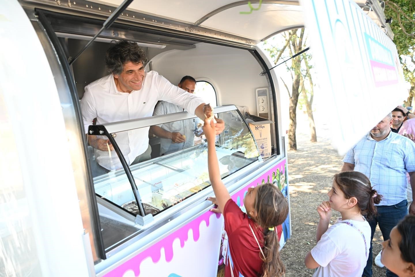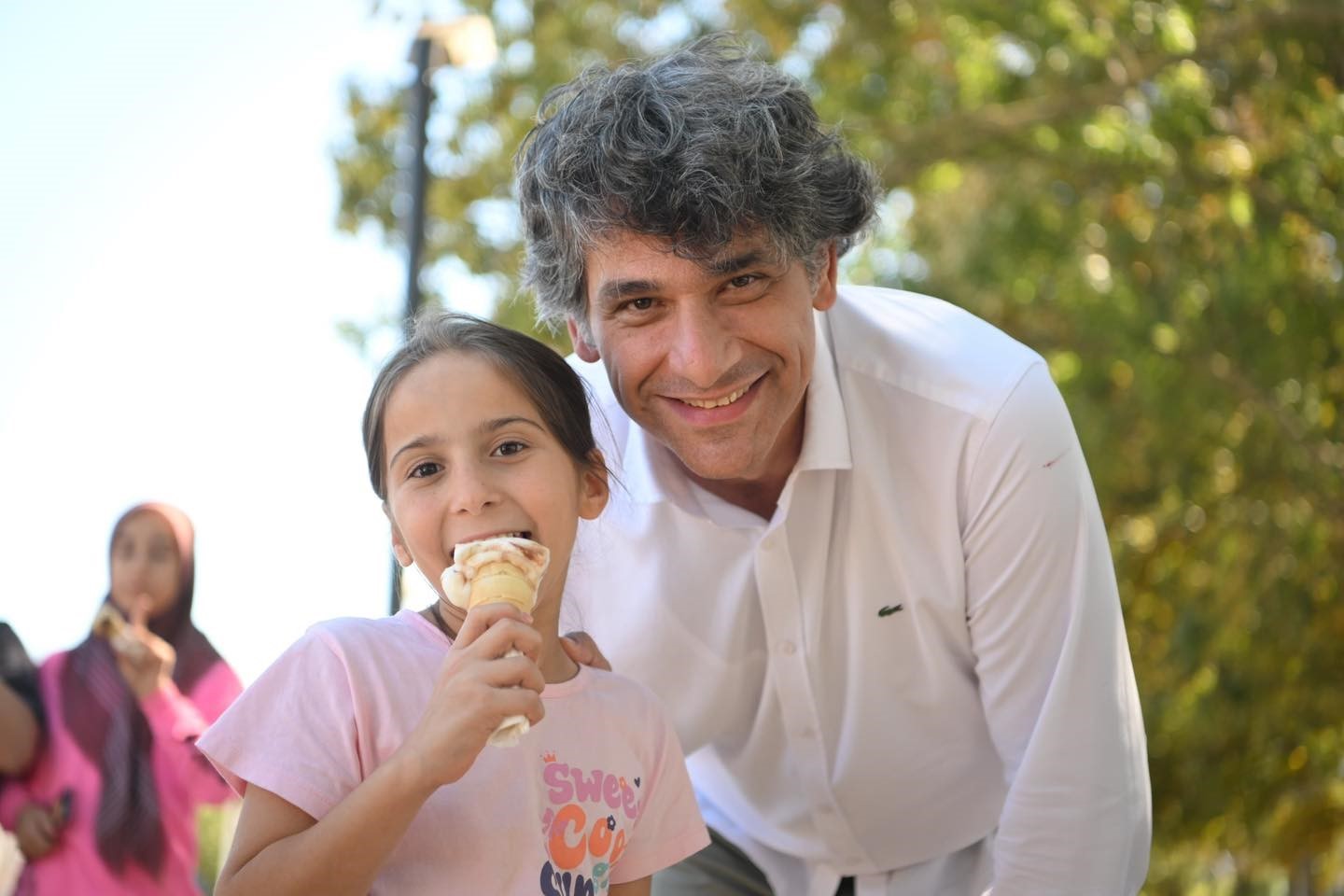 Kartepe Belediye Başkanı Mustafa Kocaman çocuklara dondurma ikram etti.