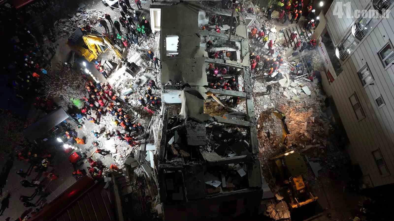 Kocaeli’nin Gebze ilçesinde çöken ve 2 çocuğun cansız bedenine ulaşılan binada, arama-kurtarma çalışmaları 14. saatine girdi. Ekipler, enkaz altındaki anne ve babaya ulaşmak için çalışmalarını sürdürürken yapılan çalışmalar havadan dronla görüntülendi.