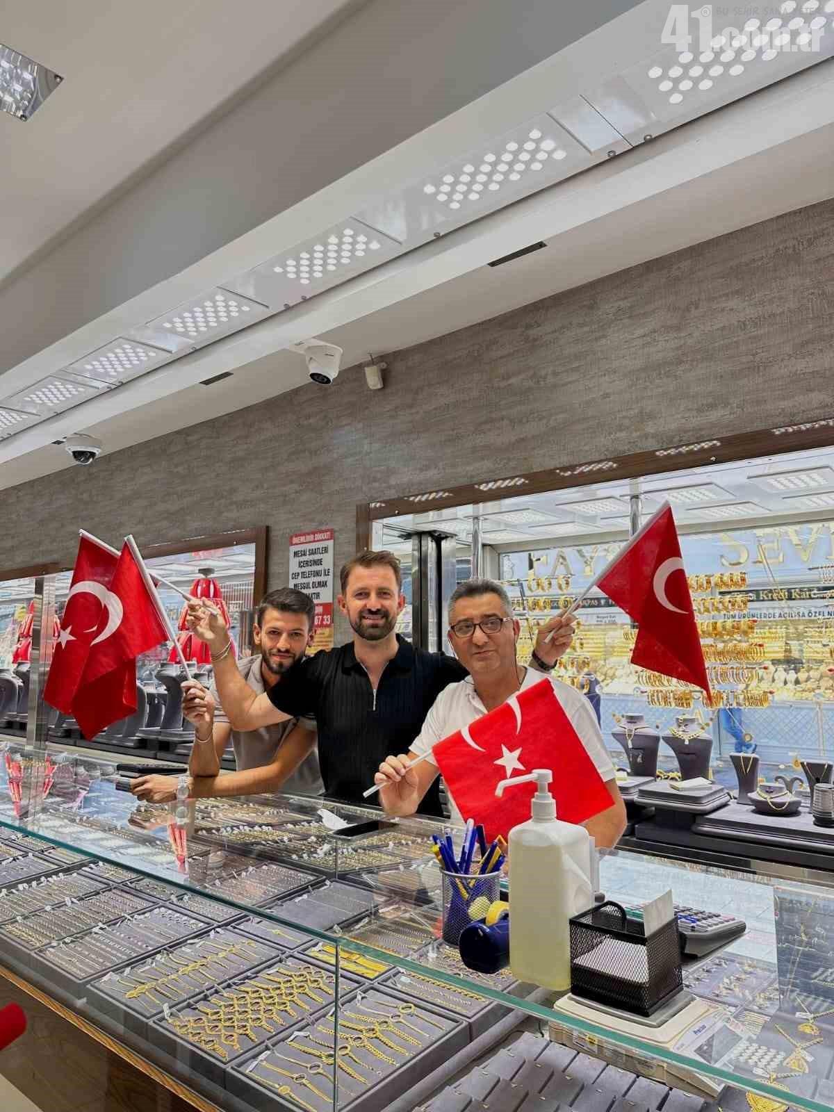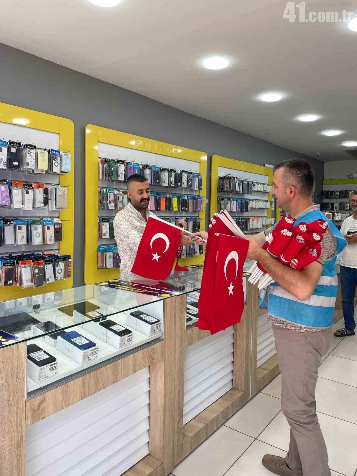 Kocaeli’de 15 Temmuz’un 9. yıldönümünde esnaf ve vatandaşlara binlerce Türk bayrağı dağıtıldı.