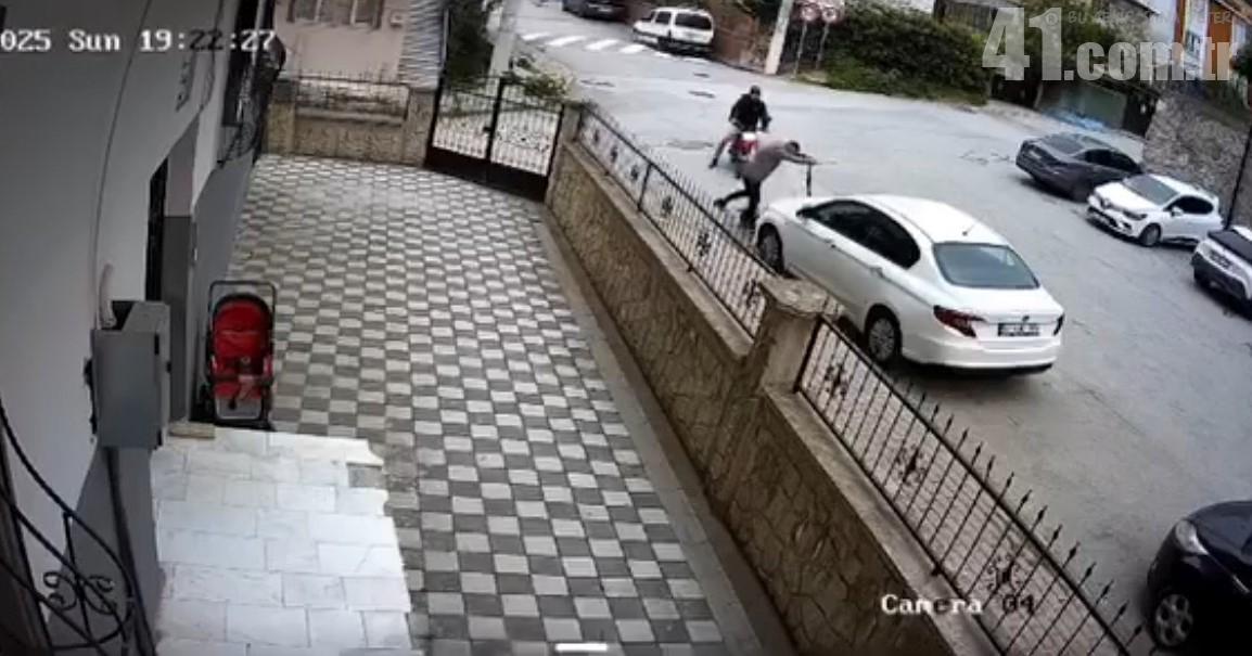Kocaeli’nin Darıca ilçesinde scooteriyle park halindeki otomobile çarpan sürücü savrularak kaldırıma düştü. Sürücünün yere düştükten sonra kalkarak önce ters istikamete koştuğu, ardından unuttuğu scooterini hatırlayıp geri döndüğü ve olay yerinden uzaklaştığı anlar saniye saniye güvenlik kamerasına yansıdı.