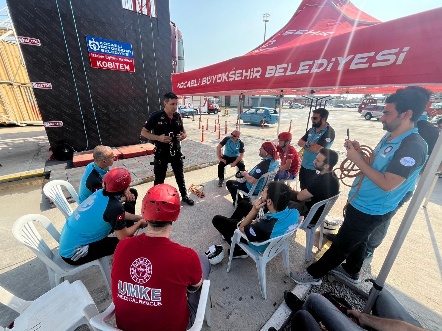 6 Şubat 2023 tarihinde meydana gelen Kahramanmaraş merkezli depremler sonrası bölgeye giden ilk ekipler arasında yer alan Kocaeli Büyükşehir Belediyesi İtfaiyesi, yaptığı çalışmalarla adından söz ettirdi. Elde ettiği birikimi kamu kurum ve kuruluşlarıyla paylaşan Kocaeli İtfaiyesi, Sağlık Bakanlığı’na bağlı Ulusal Medikal Arama Kurtarma ekiplerine (UMKE) eğitim verdi. Teorik ve uygulamalı olarak 3 gün süren eğitimler Büyükşehir Belediyesi İtfaiye Dairesi Başkanlığı Önleme ve Eğitim Şube Müdürlüğü Eğitim Birimi (KOBİTEM) Eğitim Merkezi’nde gerçekleştirildi. Uygulamalı kısımda bu tip eğitimler için tasarlanmış olan istasyon ve simülatörler kullanıldı. Eğitimin teorik bölümünde iple erişimde kullanılan ipler ve düğümler, iple erişimde kullanılan ekipman ve donanımlar gösterildi. Uygulamalı bölümde ise yüksek açı kurtarma eğitim kulesi kullanılarak iple iniş ve çıkış yöntemleri fiili olarak gerçekleştirildi.