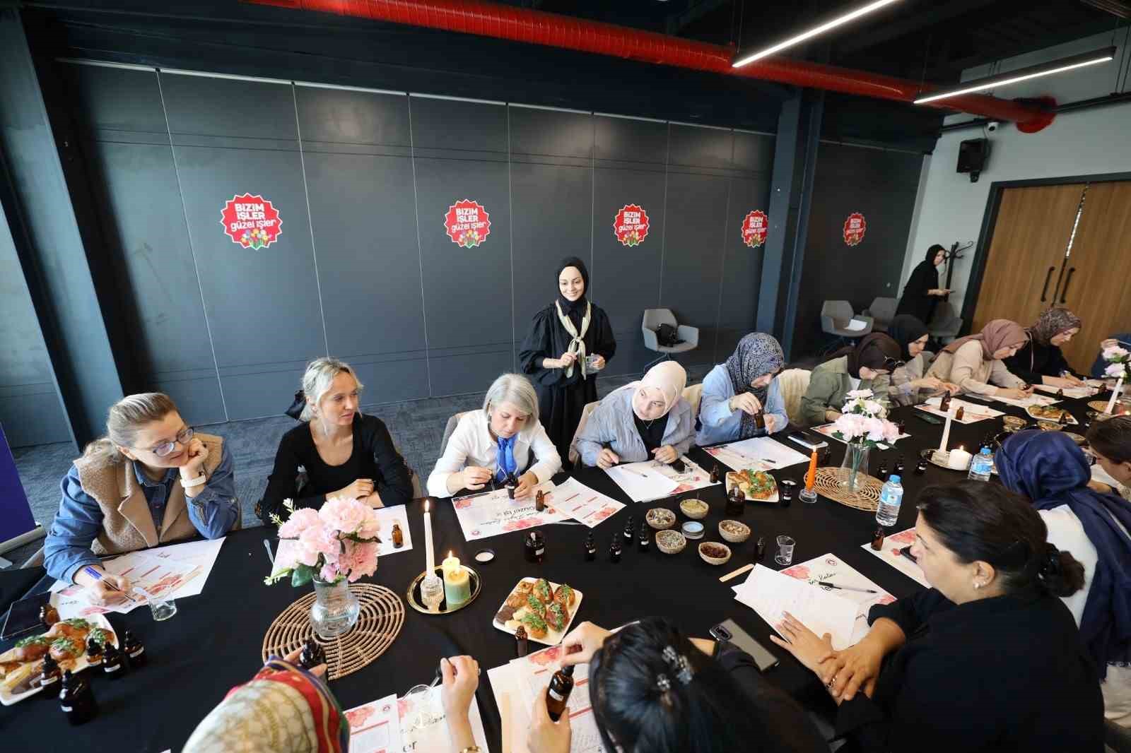 Başiskele’de düzenlenen programda kadınlar, aromaterapik masaj yağı yapımı ve yüz yogası teknikleri hakkında teorik ve uygulamalı bilgiler edindi.