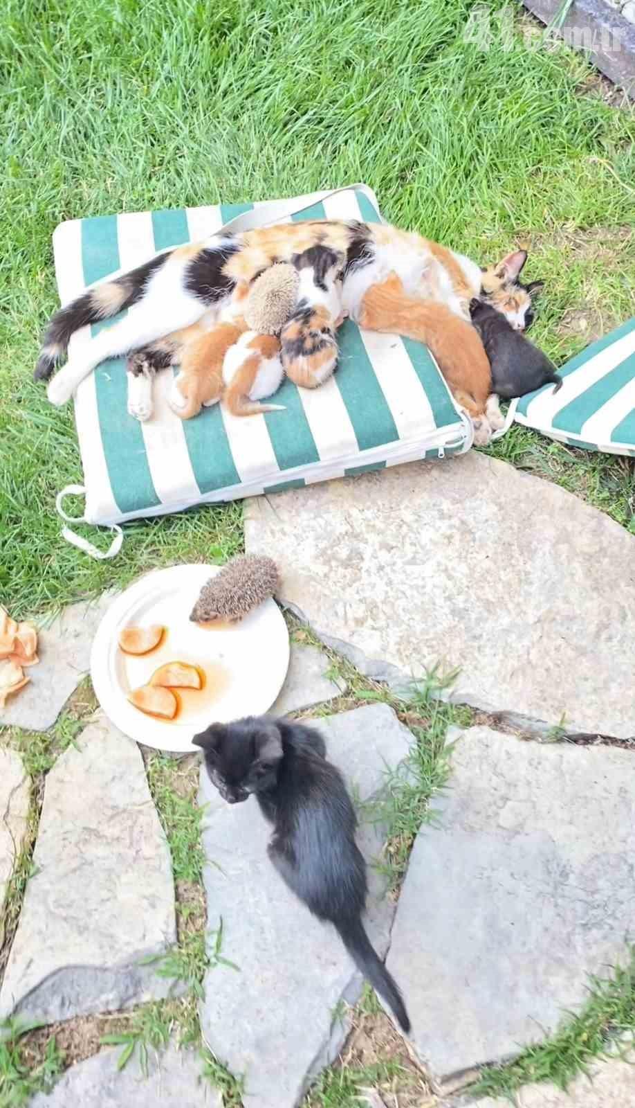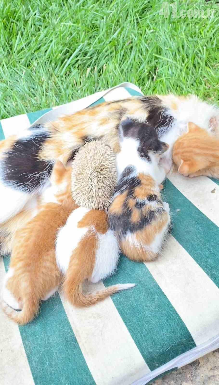 Yavru kedilerin, kirpilerin dikenlerine aldırış etmeden onlarla uyuması ve birlikte beslenmesi, görenleri gülümsetti.