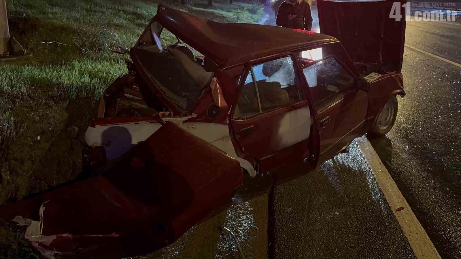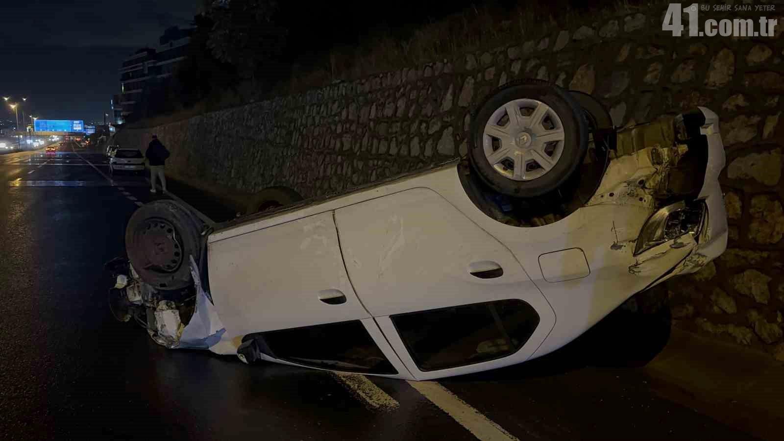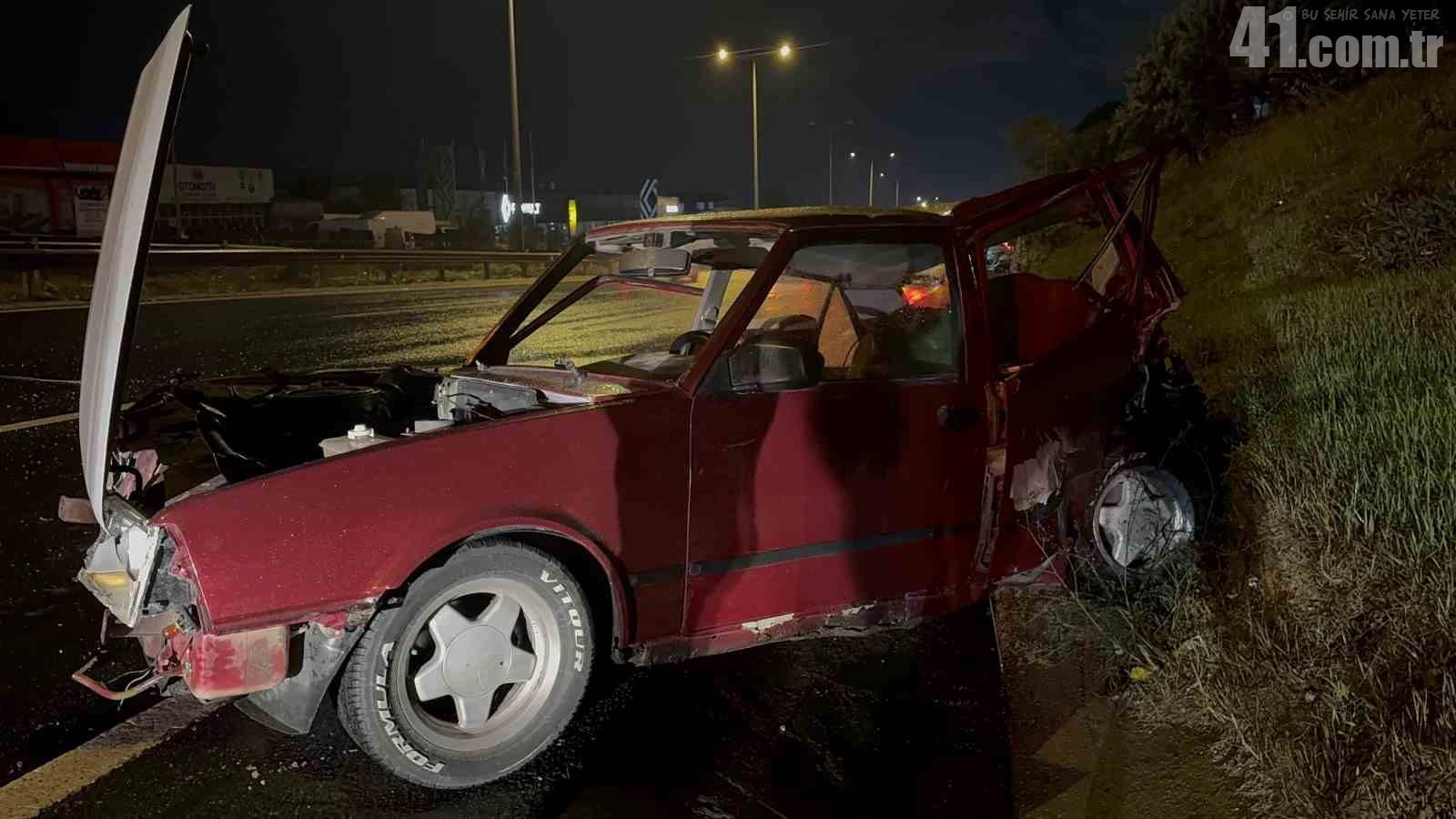 Kocaeli D-100 Karayolu’nda 2 otomobilin karıştığı kazada, çarpmanın şiddetiyle bir araç sürücüsü yola fırlarken, diğer araç ise ters döndü.