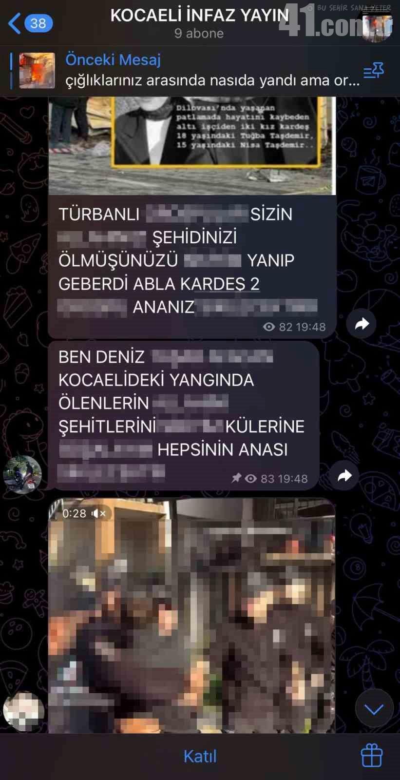 Olayın ardından “Kocaeli İnfaz Yayın” isimli bir Telegram sayfasında, yangında ölen vatandaşlara yönelik küfürlü ve hakaret içerikli paylaşımlar yapıldığı ortaya çıktı. D.Y.A. ve B.T. ismini kullanan şahısların hayatını kaybedenlerin fotoğraflarını paylaşarak küfürlü yazışmalar yaptıkları ve kendilerine tepki gösteren maktul yakınlarına da aynı şekilde karşılık verdikleri öğrenildi. Şahısların devlete ve şehitlere yönelik hakaret içerikli ifadeler de kullandığı paylaşımları, sosyal medyada büyük tepki çekti. Söz konusu şahıslar hakkında şikayetçi olunduğu öğrenildi.