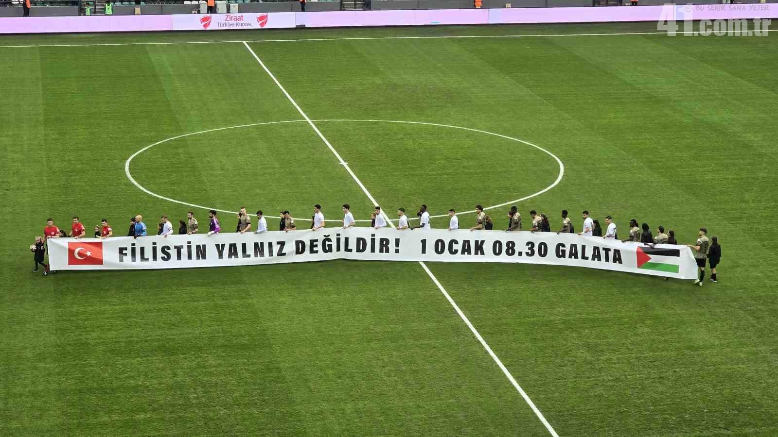 Ziraat Türkiye Kupası C Grubu’nun ilk maçında Trendyol Süper Lig ekibi Kocaelispor, Trendyol 1. Lig takımlarından Erzurumspor FK’yı konuk ediyor. Karşılaşma öncesinde her iki takım futbolcuları seremoniye Filistin’e destek pankartıyla çıktı. Pankartın üzerinde, “Filistin yalnız değildir. 1 Ocak 08.30 Galata” yazısı yer aldı.