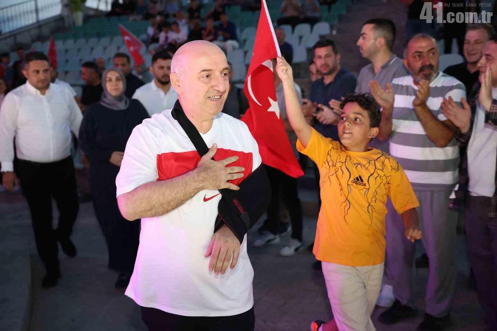 Geçirdiği talihsiz bir kaza sonucu kolundan yaralanarak doktor raporu ile istirahate ayrılan Darıca Belediye Başkanı Muzaffer Bıyık, 15 Temmuz Demokrasi ve Millî Birlik Günü gibi anlamlı bir günde vatandaşları yalnız bırakmadı. Doktor raporlu olmasına rağmen etkinlik alanına gelen Bıyık, “Bu milletin yazdığı destanı anmak boynumuzun borcudur” dedi.