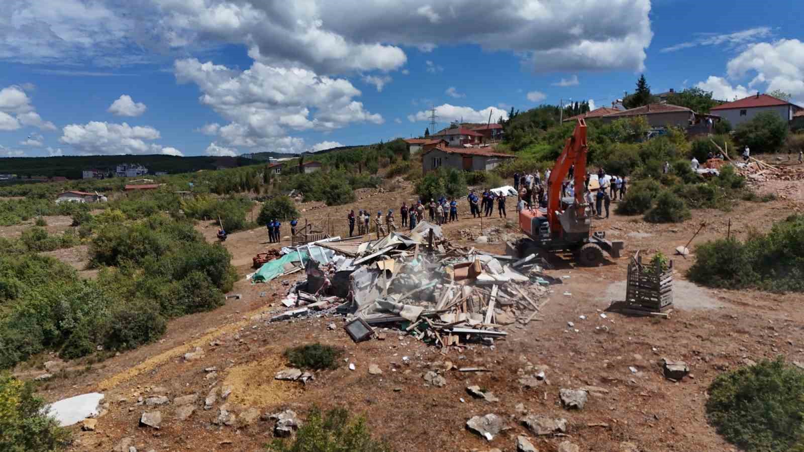 Körfez Belediyesi ekipleri, Yukarı Hereke bölgesinde orman arazisi üzerine yapılan ve yapımı devam eden 3 kaçak yapıyı yıktı.