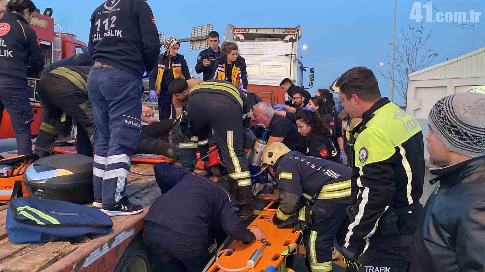 Kaza, Başiskele ilçesi D-130 Karayolu Karadenizler Mahallesi Kullar Köprülü Kavşak girişinde meydana geldi. Edinilen bilgiye göre, 41 AVG 486 plaka motosikletiyle seyir halinde olan K.C., F.Ş’nın kullandığı 41 R 2598 plakalı Mercedes marka tırla bariyer arasına sıkıştı. K.C. ile yanında yolcu olarak bulunan M.M.A., yaralandı. İhbar üzerine olay yerine sağlık, polis ve itfaiye ekipleri sevk edildi. Kısa sürede olay yerine gelen itfaiye ekipleri, tırla bariyer arasına sıkışan yaralıları çıkarmak için çalışma başlattı. Ekiplerin çalışması ile yaralılar sıkıştıkları yerden çıkarılarak sağlık ekiplerin teslim edildi. İlk müdahaleleri olay yerinde yapılan yaralılar, hastaneye kaldırıldı.