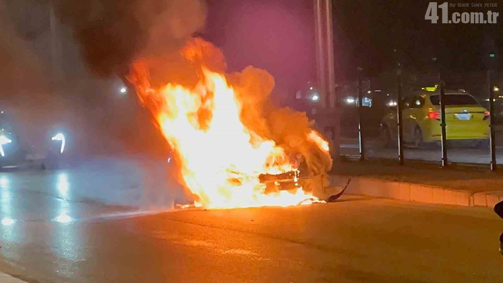 Kocaeli’nin İzmit ilçesinde seyir halinde olan bir otomobil alev topuna döndü. Yangın itfaiye ekipleri tarafından söndürülürken, aracın sanayide bakımdan yeni çıktığı öğrenildi.