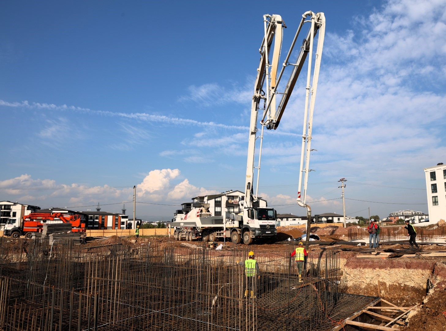 Kartepe Sarımeşe Mahallesi’nde hayata geçirilecek olan Kartepe Kent Konut Evleri projesinde inşaat çalışmaları planlanan takvim doğrultusunda ilerliyor. Kocaeli’nin gözde yerleşim alanlarından biri olmaya aday projede hem altyapı hem de üstyapı imalatları eş zamanlı olarak sürdürülüyor. Toplam 12 bloktan oluşan Kartepe Kent Konut Evleri projesinde altyapı ve üstyapı imalatları eş zamanlı ilerliyor. Şantiye alanında yoğun bir çalışma sürerken, 9 blokta kazı işlemlerinin tamamlandığı, 7 blokta ise temel imalatlarının yerine getirildiği belirtildi. Bir blokta betonarme imalatı tamamlanırken, bir diğer blokta son kat beton dökümüne geçildi. Sahada aynı anda dolgu, su yalıtımı, kalıp ve demir çalışmaları titizlikle yürütülüyor.