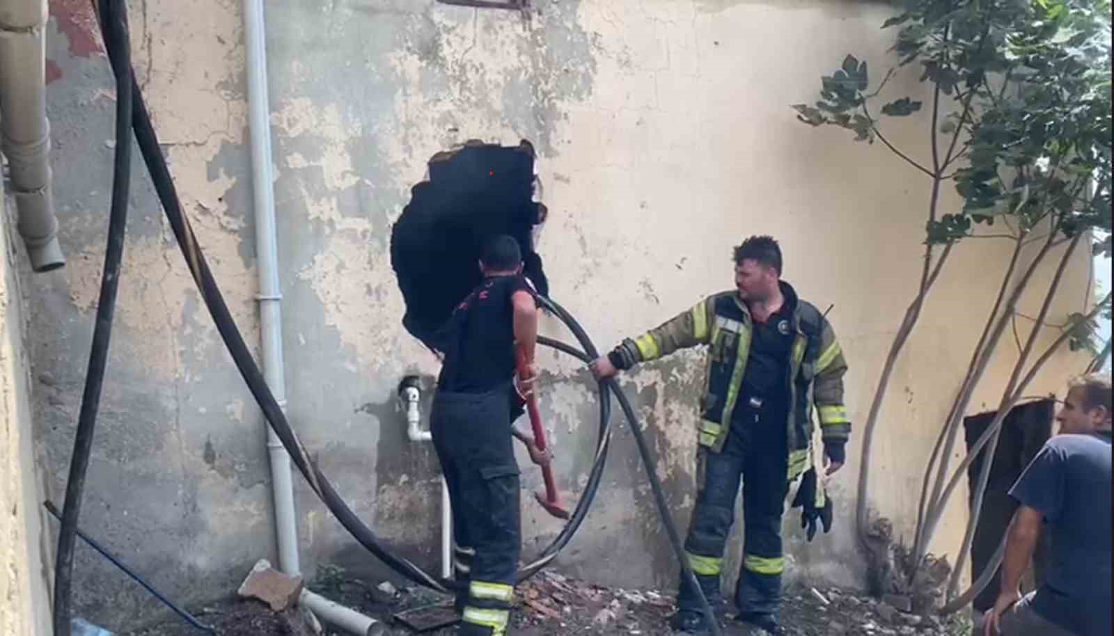 Bodrumun duvarını kırarak içeri hortum sokan itfaiye ekipleri yangını söndürdü. Olayla ilgili inceleme başlatıldı.